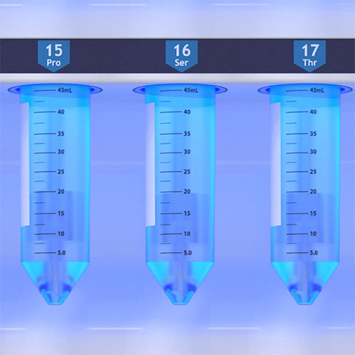 The Liberty PRIME peptide synthesizer is the most advanced platform available for microwave peptide synthesis. It features a revolutionary one-pot deprotection and coupling process allowing for a remarkable 2 minute cycle time with only 8.5mL waste per cycle (at 0.1 mmol). The Liberty PRIME is an ideal peptide synthesizer for GMP processes with automated synthesis of up to 24 peptides and a hassle-free, pre-calibrated reagent delivery system.