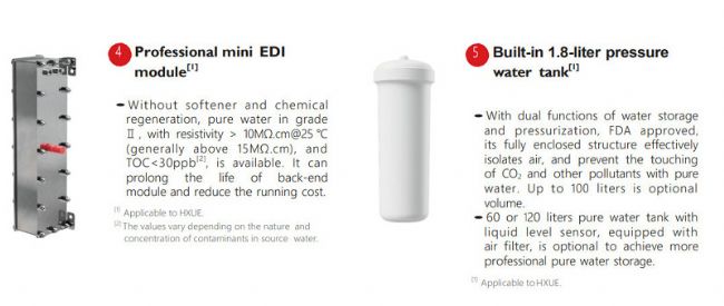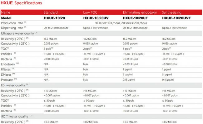 [3] HXUS/HXUE series products can produce double RO water (<5μs/cm).