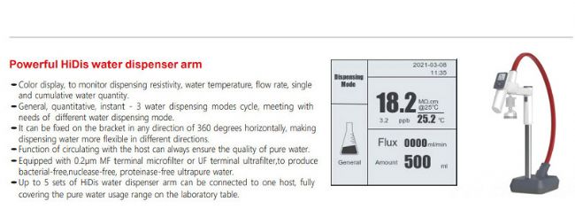 HX series, using the innovative intelligent human-computer interactive control system and 7-inch colorful capacitive touch screen, integrating functions of Internet of Things (IOT) and cloud platform, embedding new purification cartridges with patented structure, rigorous double RO system[1] , advanced EDI module[2] and DI ion-exchange cartridges with larger capacity, equipping with professional-grade pure water tank with 60-liter and HiDis water dispenser arm, can meet your critical and professional application requirements of lab pure water.