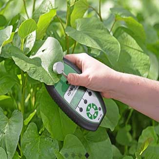 The MC-100 Chlorophyll Meter enables rapid, non-destructive measurement of chlorophyll content in plant leaves. It is an instrument capable of converting relative chlorophyll content (CCI) into actual chlorophyll content. The device has built-in calibration relationships between relative and actual chlorophyll content for 22 plant species, directly displaying the actual chlorophyll content. It can also convert CCI into SPAD units.