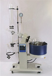 The rotary flask rotates at a constant speed, and the water bath is heated at a constant temperature. Under these conditions, the material forms a large-area, uniform thin film on the inner wall of the evaporating flask and evaporates rapidly. Evaporation efficiency can be improved under vacuum conditions (vacuum device required). The solvent vapor is cooled into liquid as it passes through the glass condenser coil (cooling device required).