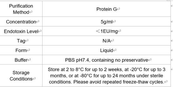 * Superior Product Purity and Extremely Low Endotoxin Levels: Through an animal-component-free production system and a special endotoxin removal purification process, the purity of this antibody is >99% as analyzed by SEC-HPLC. Its endotoxin content is strictly controlled to <1.0 EU/mg (typically <0.1 EU/mg in practice), far exceeding the general standards for in vivo experiments. This minimizes non-specific immune activation caused by endotoxins, ensuring the accuracy and reliability of animal experimental data.