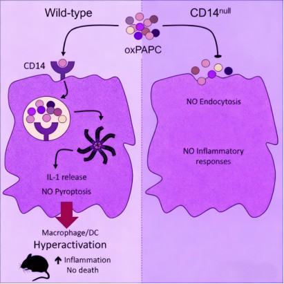 Dendritic Cell Hyperactivation: Under oxidized phospholipid stimulation, CD14 induces dendritic cells into a hyperactivated state, characterized by sustained interleukin-1 secretion and enhanced immunostimulatory capacity (without significant cell death). This depends on CD14-mediated delivery of oxidized phospholipids to intracellular compartments, activating the caspase-11-dependent inflammasome pathway.