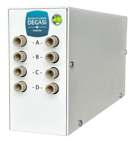 Biotech Fluidics has announced a major innovation in fluidic degassing with the launch of their high performance DEGASi® Flat Film in-line degasser. Utilizing specialized flat film, rather than traditional tubing, to remove dissolved gases, the system provides superior degassing efficiency and improved compatibility with viscous fluids and almost any organic solvent.
