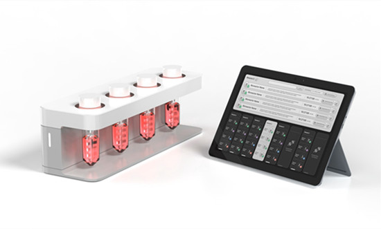 The compact RPMotion is controlled through an intuitive external LCD screen, which allows the user to cycle through different programs that fit the needs of their specific organoid type. To further increase productivity – the RPMotion has a multiplex feature allowing it to run 4 tubes in parallel, thereby enabling simultaneous experiments, and up to twenty-eight addition bioreactors can be connected through a simple plug-and-play feature controlled by the one LCD screen.