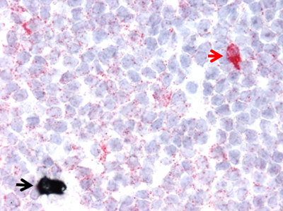 RNAscope Ig Kappa (black) and Lambda (red) mRNA in Lambda-Restricted B-cell lymphoma