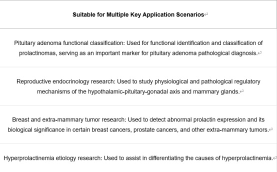 Hangzhou Start Biotech Co., Ltd. has independently developed the "Prolactin Recombinant Rabbit Monoclonal Antibody" (Product Name: Prolactin/PRL Recombinant Rabbit mAb (SDT-235-13), a high-performance antibody product with high specificity, excellent sensitivity, and outstanding staining consistency. This product was developed using recombinant rabbit monoclonal antibody technology and has been rigorously validated across multiple platforms, including immunohistochemistry (IHC) and Western Blot (WB). It holds significant application value in pituitary adenoma functional classification, reproductive endocrinology research, and breast tumor biology studies.
