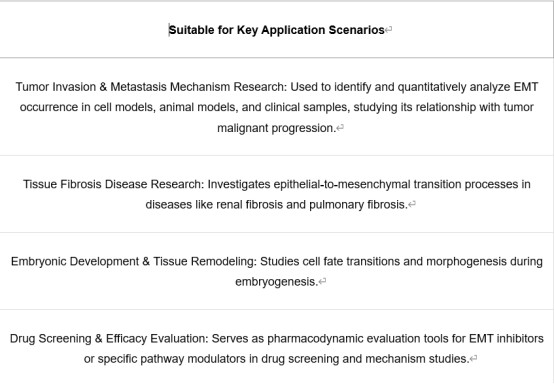 Professional Technical Support: We provide detailed product technical documentation, including specificity validation data for each antibody, recommended co-staining protocols, EMT state interpretation guides, and professional experimental design consultation, fully supporting breakthroughs in cell plasticity research.