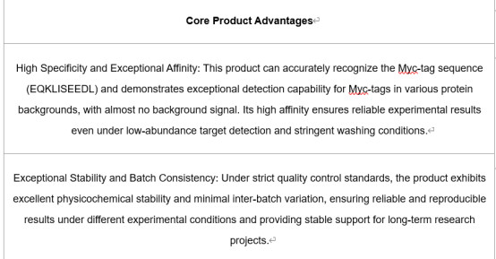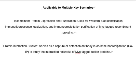 Hangzhou Start Biotech Co., Ltd. has independently developed the "S-RMab® Myc-tag Recombinant Rabbit Monoclonal Antibody" (product name: S-RMab® Myc-tag Recombinant Rabbit mAb (S-114-13), catalog number: S0B0383), a high-specificity, high-affinity, and highly stable tag detection tool. This product was developed using the proprietary S-RMab® recombinant rabbit monoclonal antibody technology platform and has been rigorously validated through various technical platforms such as immunoprecipitation (IP), Western Blot (WB), immunofluorescence (IF), and flow cytometry. It has broad application value in recombinant protein identification and purification, protein interaction studies, and cell transfection efficiency analysis.