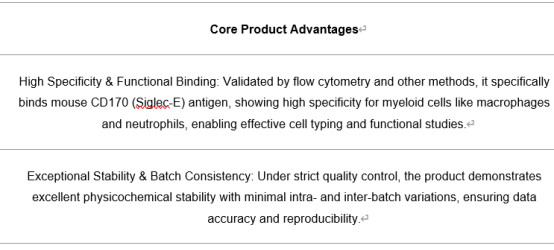 Hangzhou Start Biotech Co., Ltd. has independently developed "Rat Anti-Mouse CD170 Antibody" (Product Name: Rat Anti-Mouse CD170 Antibody (S-R691), Catalog Number: S0B5103), a high-specificity, excellent-affinity, and exceptionally stable immunoregulatory receptor detection tool. This product precisely recognizes mouse CD170 (Siglec-E) protein, with significant applications in myeloid cell function studies, inflammatory response regulation, and tumor immune microenvironment exploration in mouse models.