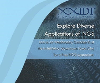 CORALVILLE, IA – 23 September 2014 – Integrated DNA Technologies (IDT), the world leader in oligonucleotide synthesis, invites researchers to join their upcoming free symposium on October 8th from 9am-5pm. Taking place in Iowa city’s hotelVetro, leading experts from a range of areas throughout life science will share how they have applied NGS technologies.
