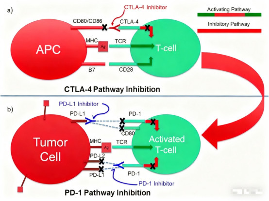 The CTLA-4 and PD-1/L1 pathways play complementary roles in immune regulation. CTLA-4 primarily regulates T cell activation during the initial phase of the immune response, while PD-1 mainly prevents excessive T cell activation during the effector phase. This mechanistic difference provides a theoretical basis for combination therapy.