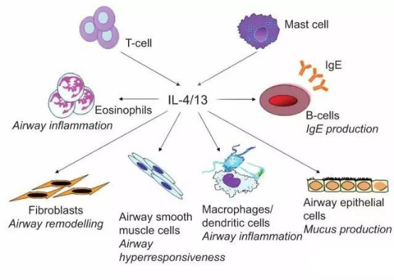The core driving role of IL-4 in allergic diseases can be likened to the leader of an "axis of evil," operating through multiple parallel and interconnected pathways that collectively contribute to the typical symptoms and chronic progression of these diseases. In the pathogenesis of allergic asthma, IL-4 plays multiple roles. After inhalation of allergens, antigen-presenting cells activate naive T cells. In the existing IL-4 microenvironment, these T cells differentiate into Th2 cells and produce more IL-4, forming an autocrine loop. This IL-4 directly acts on B cells, prompting them to produce large amounts of allergen-specific IgE antibodies. These IgE antibodies then bind to FcεRI receptors on the surface of mast cells and basophils, sensitizing the body. Upon re-exposure to the same allergen, these cells rapidly degranulate, releasing pre-stored mediators such as histamine and leukotrienes, causing acute bronchoconstriction, vasodilation, and mucus secretion—the hallmark of an acute asthma attack. Simultaneously, IL-4 directly acts on airway structural cells: it stimulates airway epithelial cells and goblet cells to produce excessive mucus, clogging already narrowed airways; it promotes the proliferation and enhanced contractility of airway smooth muscle cells, leading to airway hyperresponsiveness (AHR), where the airways overreact to non-specific stimuli (e.g., cold air, smoke); and it participates in airway wall remodeling, including subepithelial fibrosis and smooth muscle thickening, which form the structural basis for the chronicity and irreversible airflow limitation in asthma.